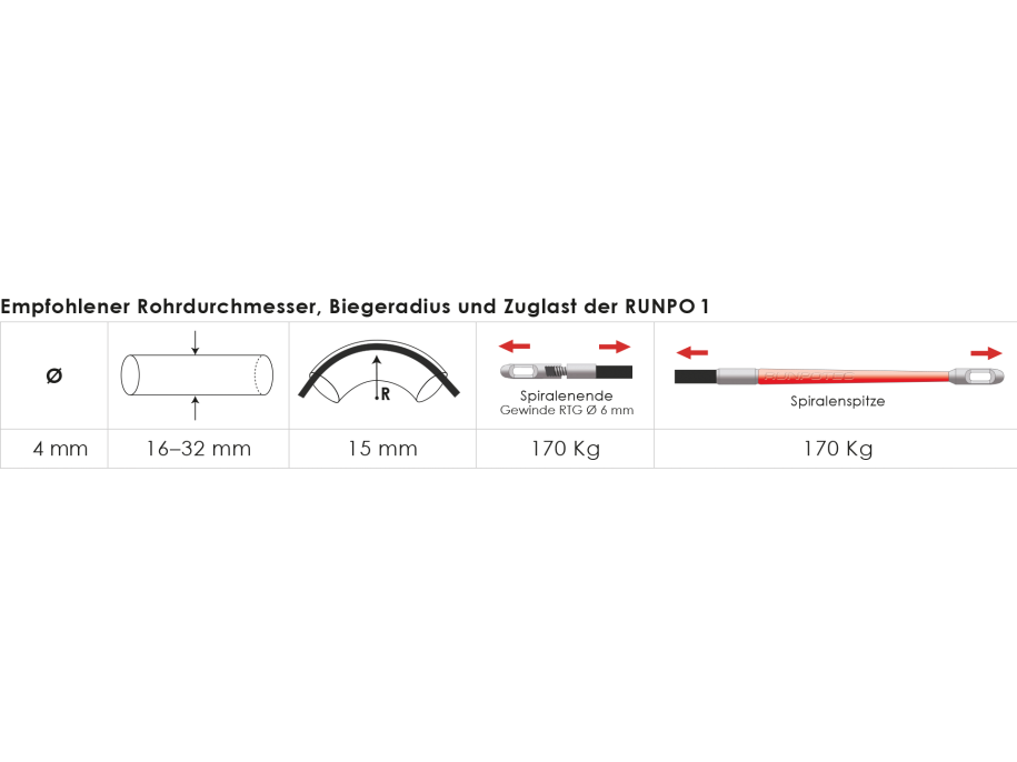 Runpotec Power Gleiter Spirale KST 4mm Kunststoffspirale Länge 15m Nr.30029 Powergleiter verpresst mit 4 mm Spezialkunststoffspirale. Verschraubter Spezial-Ösenkopf am Stangenende. (nicht für den RT2008 geeignet)